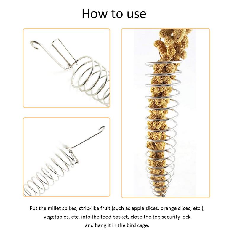 4. How to use: Put the parrot’s favorite food in the basket, and then hang it on a bird cage or other place where it can be hung.