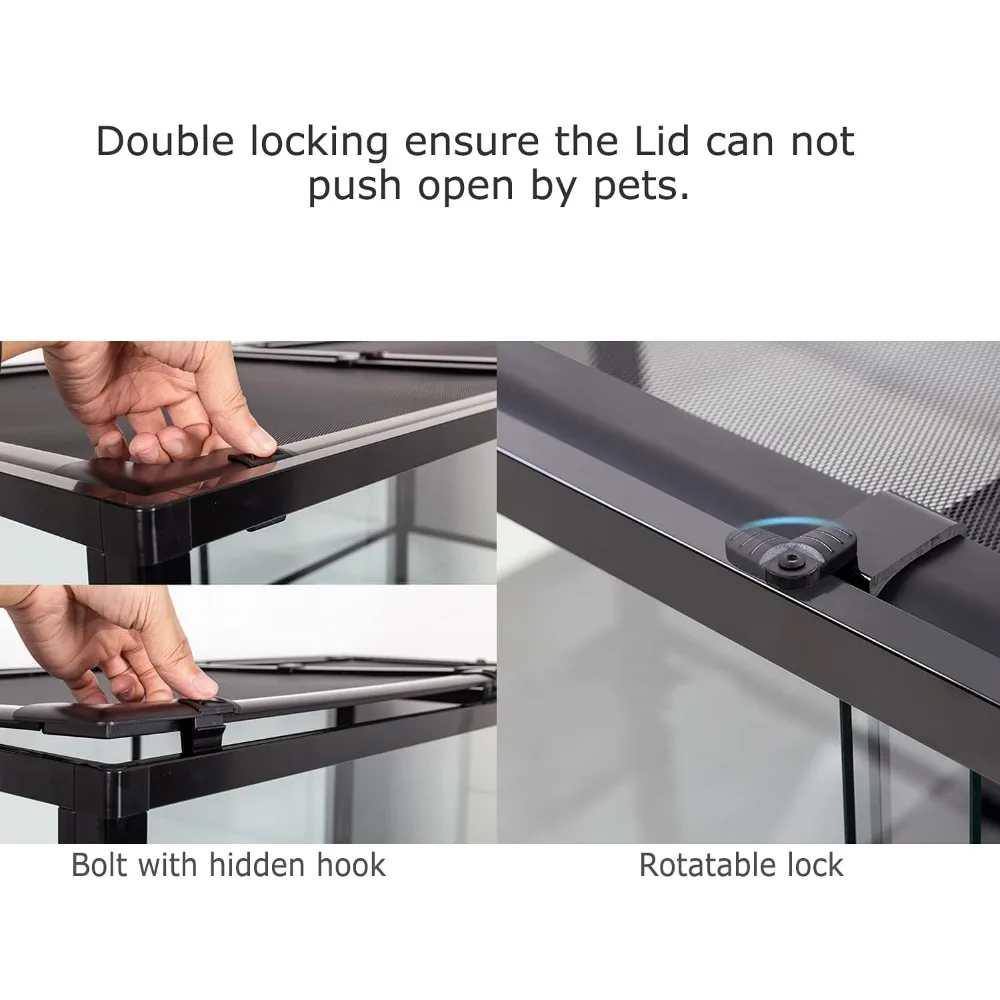 - 【Anti Escape】Security buckle on the lid ensure the tank closed tightly, prevent your reptile amphibian chameleon pets from escaping. And the security lock avoid the doors open accidently by your kids and keep your kids safe.